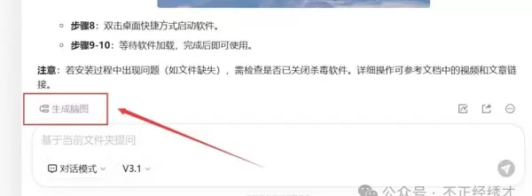 - 下滑至回答底部,点击“生成脑图”按钮;