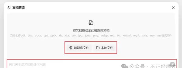 ② 文档解读:支持对已上传至知识库的文件或本地设备中的文档进行提问,快速提取关键信息;