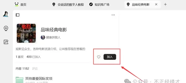 - 选择其中一个感兴趣的共享知识库进行加入;
