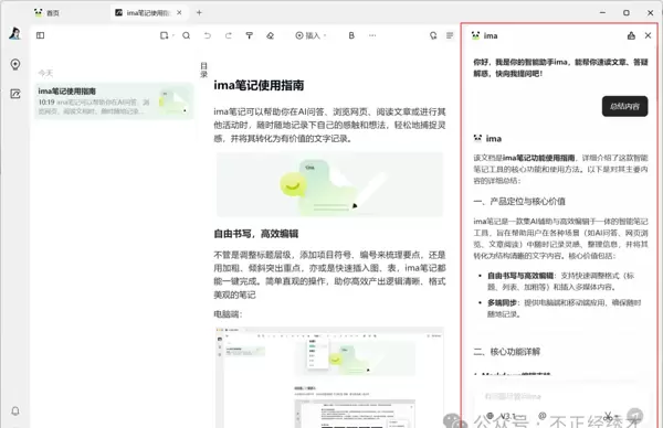 除了文档导入外,ima还内置了便捷的笔记编辑功能,方便随时记录想法、摘录要点或补充说明,进一步完善知识体系的完整性。