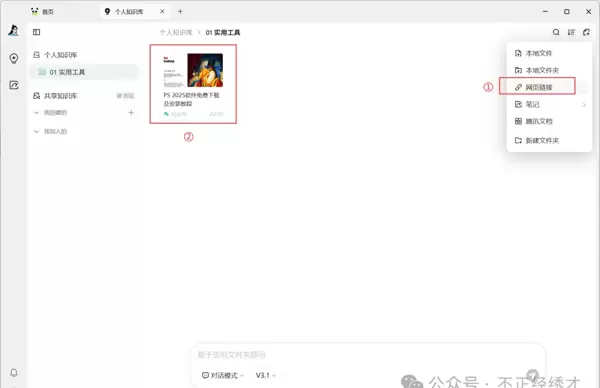 - 通过“网页链接导入”功能,添加一篇关于PS安装教程的公众号文章;