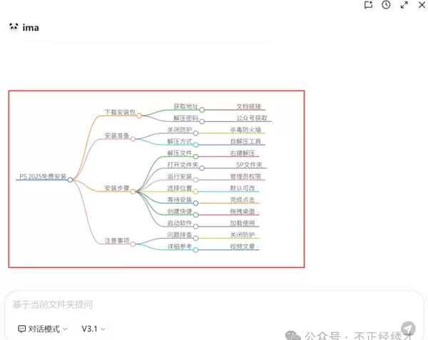 - 系统随即生成一张结构清晰、视觉美观的思维导图;