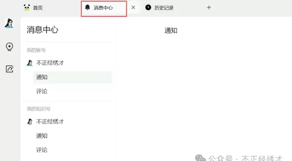 (2)消息中心集中展示系统通知以及他人在共享知识库中的评论信息;
