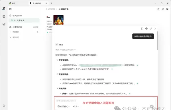 - 成功加入后,不仅能查看其中内容,还可以直接在该知识库环境下提问,获取针对性强的答案。