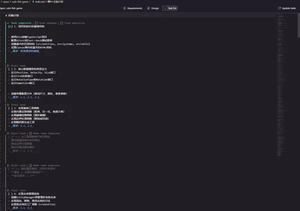 Kiro将整个项目拆解为33个独立的小任务,每个任务都包含: