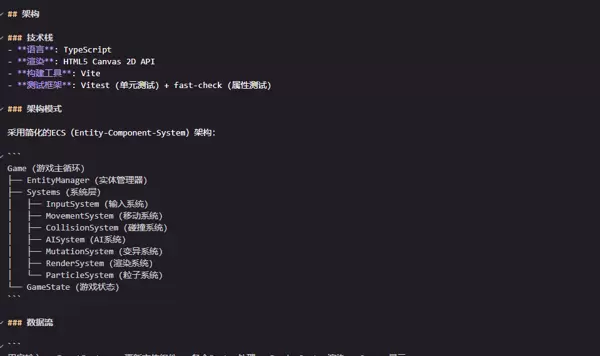 Kiro建议采用ECS(Entity-Component-System)架构。坦白讲,我之前听说过ECS,但总觉得过于抽象,迟迟未深入研究。