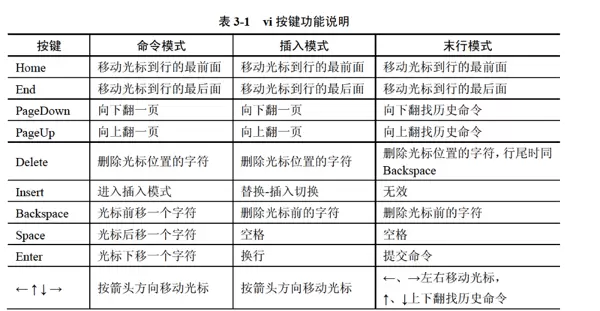 - 末行模式:通过 :、? 或 ! 进入,用于执行文件保存、查找替换等全局性操作,执行完毕自动回到命令模式。