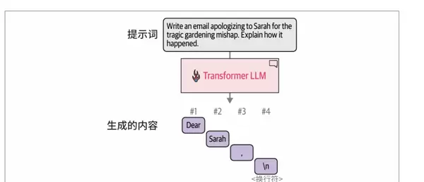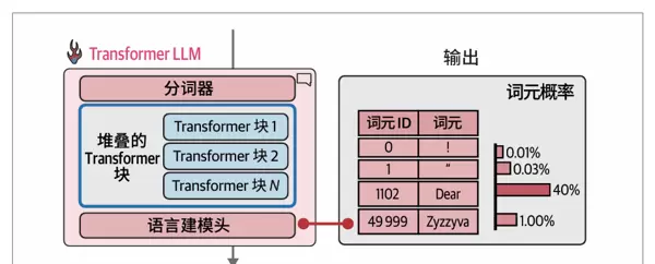 从整体来看,一个典型的LLM接收用户输入的提示词(prompt),并逐步生成相应的文本内容。整个过程并非一次性完成,而是逐个词元(token)进行预测和输出。