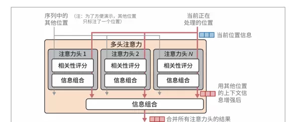 通过对每个位置进行独立的相关性打分并组合信息,多头机制允许模型从多个视角同时关注不同类型的依赖关系。这种并行结构显著增强了模型对复杂语言模式的理解能力。