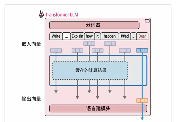 在实际生成过程中,缓存先前词元的计算状态比反复执行相同运算更为高效: