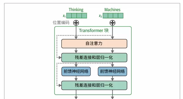 每个 Transformer 块主要由两个顺序连接的组件构成: