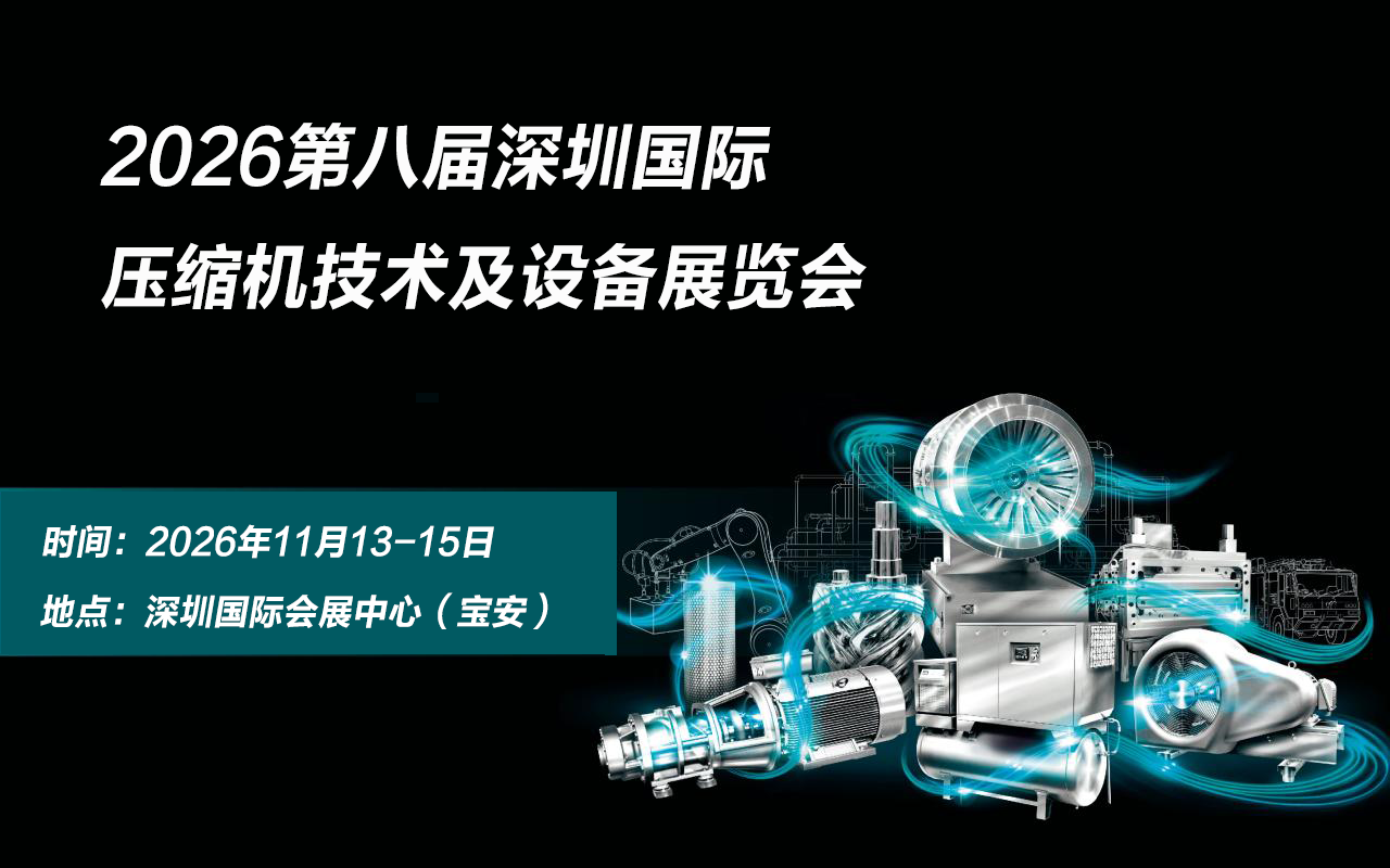2026第八届深圳国际压缩机技术及设备展览会 The 8th Shenzhen International Compressor Technology and Equipment Exhibition& 2026 时间:2026年11月13-15日 | 地点:深圳国际会展中心(宝安) 展会前言 随着全球工业智能化转型的加速推进与“双碳”目标的深入实施,压缩机作为能源动力与流体输送领域的核心装备,正迎来技术革新与产业升级的关键机遇期。深圳作为粤港澳大湾区核心城市,汇聚了高端制造、新能源、电子信息等优势产业集群,为压缩机技术落地提供了丰富应用场景与广阔市场空间。 深圳国际压缩机技术及设备展览会将于11月13-15日在深圳国际会展中心(宝安)盛大举办,立足深圳,以“绿色创新驱动,智联压缩未来”为主题,齐聚海内外知名企业,集中呈现螺杆式、离心式、氢能源专用等全系列压缩机设备及节能后处理系统、智能运维方案。致力于搭建全球压缩机产业前沿技术展示、高端商贸合作的顶级平台。 在这里,您将见证前沿技术的创新突破,对接产业链上下游优质资源,洞察政策导向与市场需求的精准契合,共探行业高质量发展的核心路径。 展会亮点 前沿技术集中展示:汇聚全球压缩机领域最新技术成果,包括高效节能型压缩机、智能变频压缩系统、磁悬浮轴承技术等前沿产品,展现行业在能效提升、智能化控制及绿色环保方面的突破性进展,为观众呈现未来压缩技术的发展方向。 精准应用场景对接:针对新能源、石油化工、医疗健康、食品加工、轨道交通等重点应用领域,设置专题展区及场景化演示,展示压缩机技术在各行业的定制化解决方案,帮助参展企业与下游应用端实现精准供需对接,推动技术成果转化与产业升级。 高端学术与产业论坛:同期举办多场高水平论坛及技术研讨会,邀请行业专家、学者及企业代表围绕“双碳背景下压缩机行业的绿色转型”“智能化技术在压缩系统中的应用”“压缩机能效标准与国际认证”等热点议题展开深入探讨,分享前沿观点与实践经验,搭建产学研用一体化交流平台。 国际合作与贸易促进:依托深圳作为国际化大都市的区位优势,吸引来自全球多个国家和地区的采购商、代理商及行业协会参与,通过B2B对接会、海外买家专场洽谈等活动,为国内外企业搭建跨国合作桥梁,促进技术引进与产品出口,助力中国压缩机企业拓展国际市场。 展品范围 压缩空气技术 • 空气压缩机 • 工艺压缩机 • 特种压缩机 • 压缩机零部件 • 压缩空气后处理设备 • 润滑油及行业相关辅助设备 真空技术 • 真空泵 • 真空阀门及真空零部件 • 真空测量与校准仪器、仪表及真空检漏仪器 • 真空应用设备 • 真空材料、真空泵油及真空工程配套设备 如欲订展位和了解更多信息,请通过以下联络方式: 深圳国际压缩机技术及设备展组委会