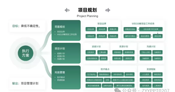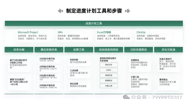 - 创建工作分解结构(WBS),将整体项目拆解为更小、更易管理的任务单元,为后续计划奠定基础。