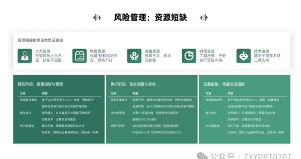 - 风险管理计划(识别潜在威胁与机遇,评估影响并制定应对措施)