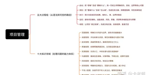 项目管理建立在两大核心结构之上:五大过程组与十大知识领域。
