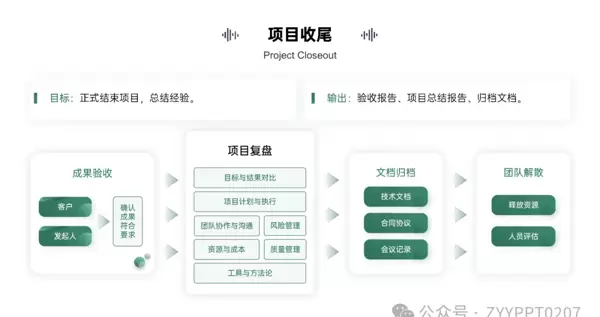 目标:全面终结项目活动,完成交付,释放资源,并积累组织知识。