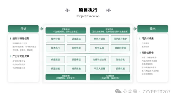 目标:依据既定计划调动资源,推动项目任务的实际完成,产出可交付成果。