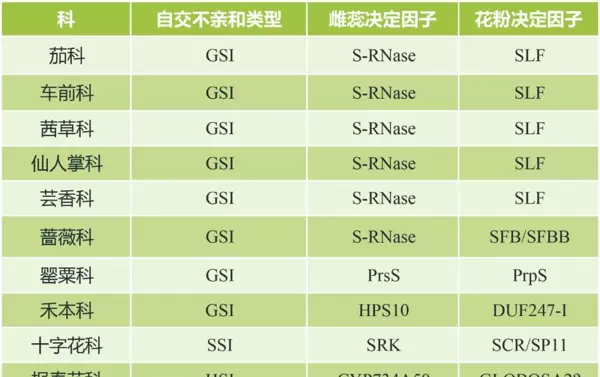 注:表中列出的是各科代表性物种的主要自交不亲和机制,实际分类中可能存在例外情况,具体应以物种为单位进行分析。“?”表示当前研究尚未完全确认相关因子。