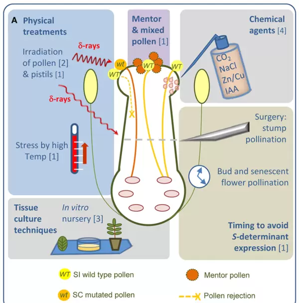 - 物理方法:对花粉或雌蕊组织施加辐射或高温处理;