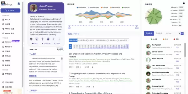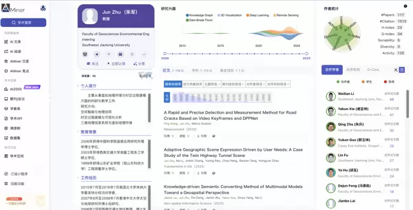 点击期刊或会议页面上的学者姓名,可直接进入该学者的详细画像页面,进一步了解其研究轨迹与学术成果。