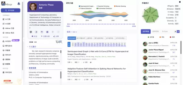 Antonio Plaza 是该期刊最具影响力的高引作者之一,累计发表论文110篇,总引用数高达8564次。他的研究长期聚焦于高光谱遥感数据的处理与分析,在高光谱图像分类、特征提取及多源数据融合等方面取得了系统性成果,为遥感信息智能解译提供了重要的理论支撑和技术路径。