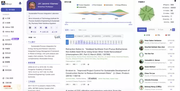 期刊核心高产作者之一,发表论文达137篇,总引用数为8281。Ji?í Jaromír Kleme? 长期专注于可持续过程系统工程与清洁生产技术的研究,其工作为工业流程的绿色化和资源高效利用提供了重要的理论支撑与实践路径。