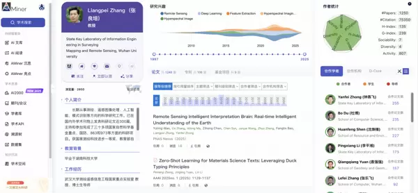 一位代表性高产作者是长期深耕遥感数据分析的学者,共发表论文31篇,被引用1215次。他专注于遥感数据的变化检测与场景理解技术,研究成果广泛应用于环境监测、灾害预警与应急管理等多个实际场景,有效推动了遥感技术从“数据获取”向“决策支持”的转化进程。