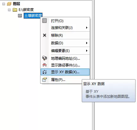 操作方式:对上一步生成的表格数据点击右键,选择“显示XY数据”选项。