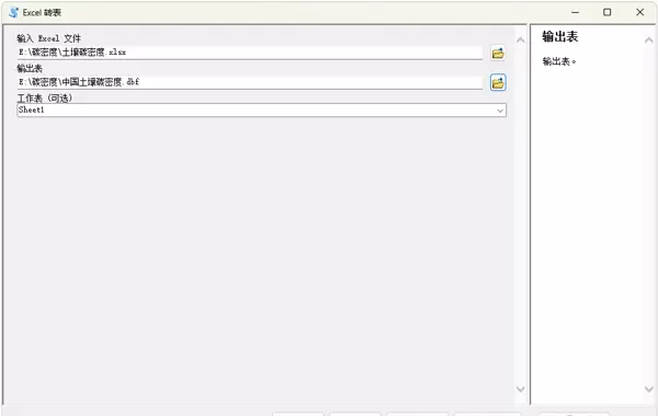 参数配置说明:将原始Excel文件转换为ArcGIS支持的.dbf格式数据。此步骤的关键在于,ArcGIS在进行空间分析时要求每个记录具备唯一标识字段,若缺少该字段则可能导致操作失败或系统报错,因此通过此转换确保数据结构符合平台要求。