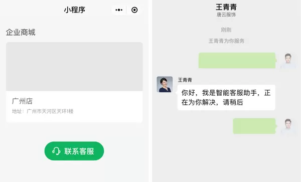 7、当用户使用小程序时,点击相关按钮即可直接向已配置的客服人员发起会话咨询。