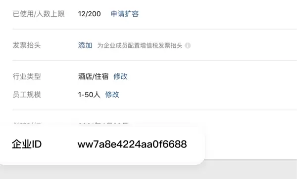 2、在企业基本信息区域中,获取并复制当前企业的唯一标识——企业ID。