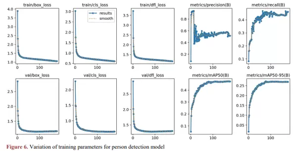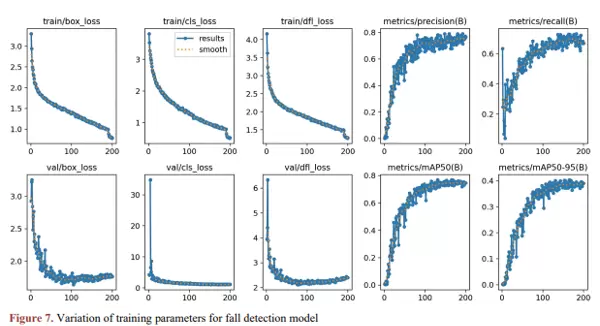 训练过程中记录的参数变化曲线分别如图6(人员检测)和图7(跌倒检测)所示,展示了模型在不同阶段的学习动态。