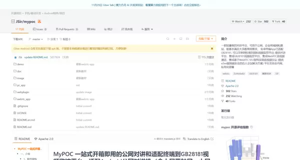 项目描述:该平台是一个轻量级对讲系统,兼容公网、企业局域网及基站网络环境,满足日常通信需求。其安全终端符合GB28181国家标准,可接入国标视频监控平台;系统集成了WebRTC音视频通信能力,基于SFU架构实现百人规模的端到端加密音视频会议,并支持对讲服务、视频监控集成以及全内网私有化部署。