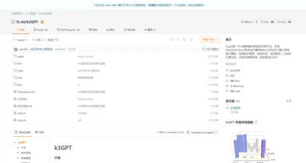 项目链接:https://gitee.com/Yi_AI/k3GPT