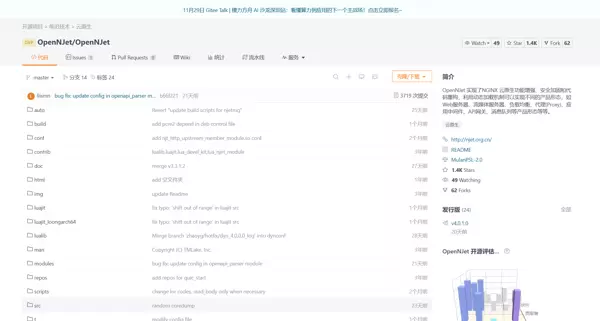 项目描述:OpenNJet 基于NGINX进行深度重构,在保留原有高性能特性的基础上,增强了云原生能力、安全性机制与代码架构。通过动态加载技术,灵活适配多种服务形态,如Web服务器、流媒体服务器、负载均衡器、反向代理、API网关、应用中间件及消息队列等。