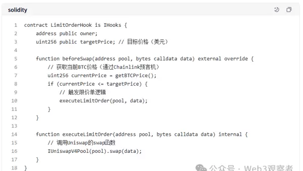 关联至指定资金池;PoolManager - 前端DApp集成限价单配置界面,用户输入目标价位后,前端调用Hook的