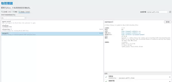 例如,我在此环境中安装了两个用于处理 Excel 文件的库: