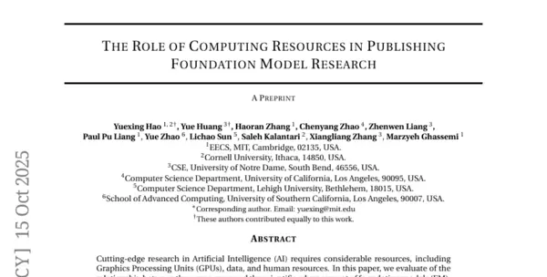 A:算力鸿沟指的是在AI基础模型研究中,不同研究机构在获取GPU等计算资源方面存在巨大差异的现象。拥有充足算力的机构(主要是大型科技公司和顶尖大学)能够训练更强大的模型、发表更有影响力的论文,而资源匮乏的研究者则面临越来越高的参与门槛,这种差距正在不断扩大。