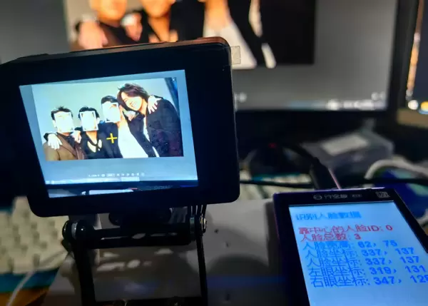 当启用HUSKYLENS 2的人脸识别功能时,只要有人脸进入摄像头视野,设备即可自动检测并在屏幕上框选出人脸区域,同时获取当前画面中的人脸总数及相关详细信息。
