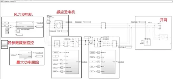 在电气侧,发电机及其控制模块负责将机械能转化为电能。利用Simulink中的电机模块库,可以搭建双馈异步发电机或永磁同步发电机模型,并结合变流器控制策略,完整还原发电环节的动态响应特性。这种对风机内外部结构的高度还原,使得整个风电系统行为更贴近实际运行状况。