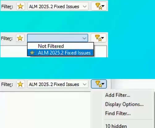 针对使用桌面客户端的用户,Perforce ALM 对筛选下拉菜单进行了多项优化: