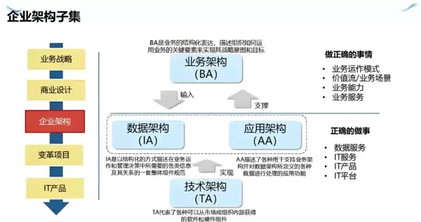 | 业务架构 | 战略落地的顶层设计 | 明确业务目标、价值流程、业务规则 | 避免技术开发与业务脱节,确保系统功能紧扣业务主线 |
