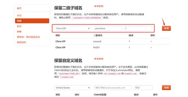 由于此前创建的隧道使用的是随机生成的HTTP公网地址,该地址会在24小时内发生变动,不适合长期稳定访问。若希望将PicoShare平台持续对外提供服务,并便于他人访问和分享,则建议配置一个固定的二级子域名作为公网地址。