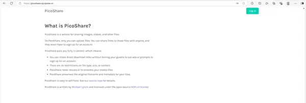 PicoShare 是一款轻量级的本地文件共享工具,能够帮助用户在不同设备之间快速传输照片、视频、文档等各类文件。相比传统的 FTP 方式,其操作更为简便,特别适合摄影爱好者、自由职业者以及家庭用户使用。无需复杂的配置即可快速搭建个人专属的文件共享环境。
