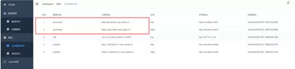 更新完毕后,再次查看在线隧道列表,原随机公网地址已被替换为固定不变的二级子域名地址。