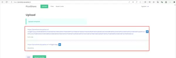 文件上传成功后,系统会自动生成一个下载链接,点击该链接可立即下载文件,也可将其分享给他人使用。
