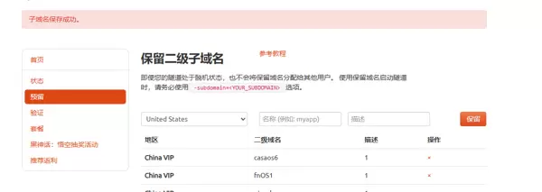 首先,登录cpolar官网,在左侧菜单中点击“预留”,选择“保留二级子域名”。地区建议选择China VIP Top,填写所需的二级子域名名称并添加备注信息,确认后点击保留。