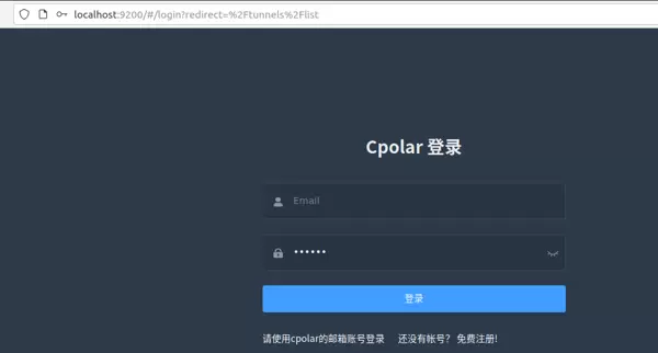 当 cpolar 成功安装并启动后,在浏览器中输入 Ubuntu 主机的 IP 地址并加上 9200 端口(例如:http://localhost:9200),即可进入管理界面进行隧道配置。
