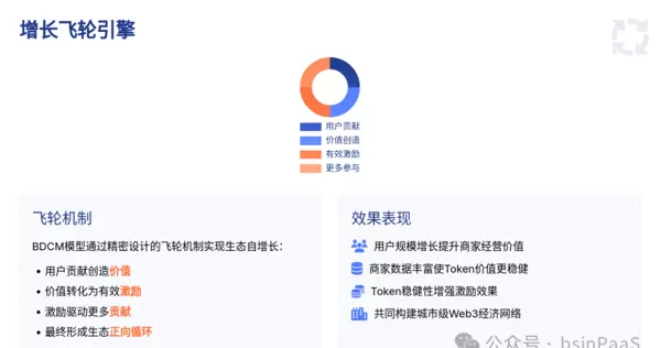 商家让利被视为对生态的贡献,平台以 Token 形式返还激励;用户消费等同于“挖矿”,直接产生价值回报;整个商圈在正向循环中实现协同增长,驱动飞轮效应。