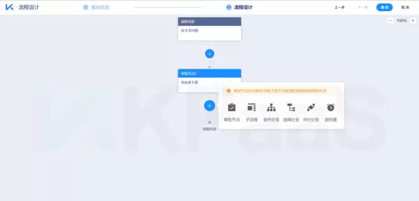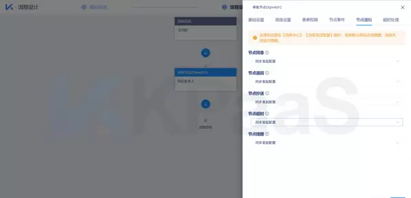KPaaS平台的流程设计功能支持全面的节点通知、超时提醒和自动催办策略配置,提升整体响应速度。